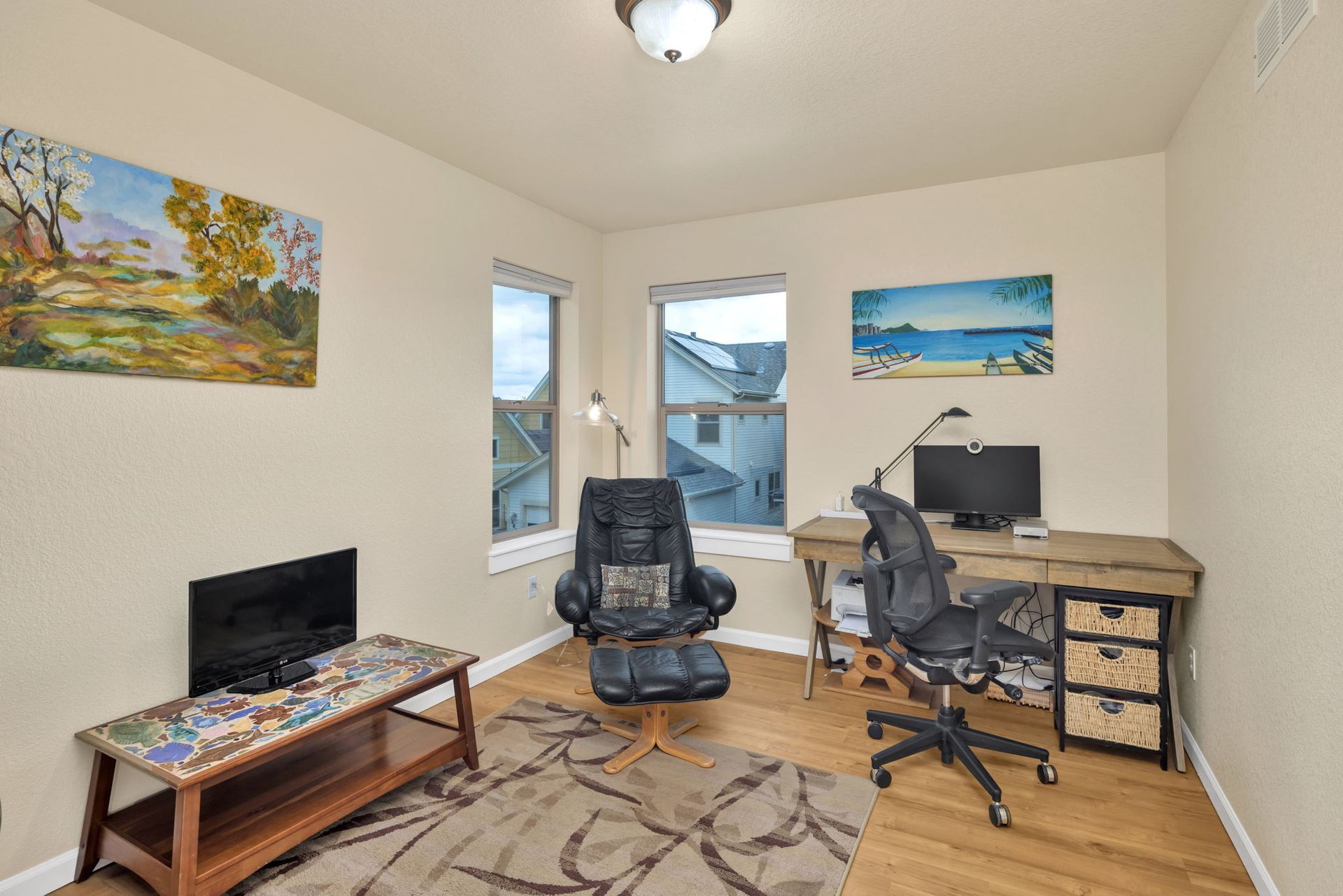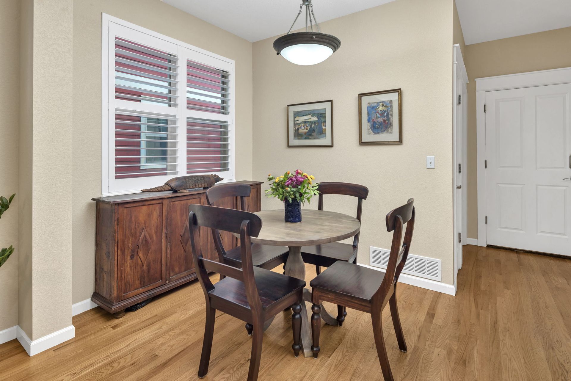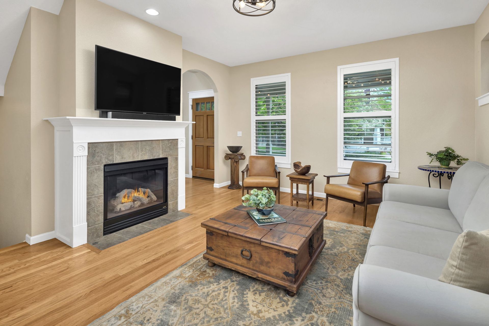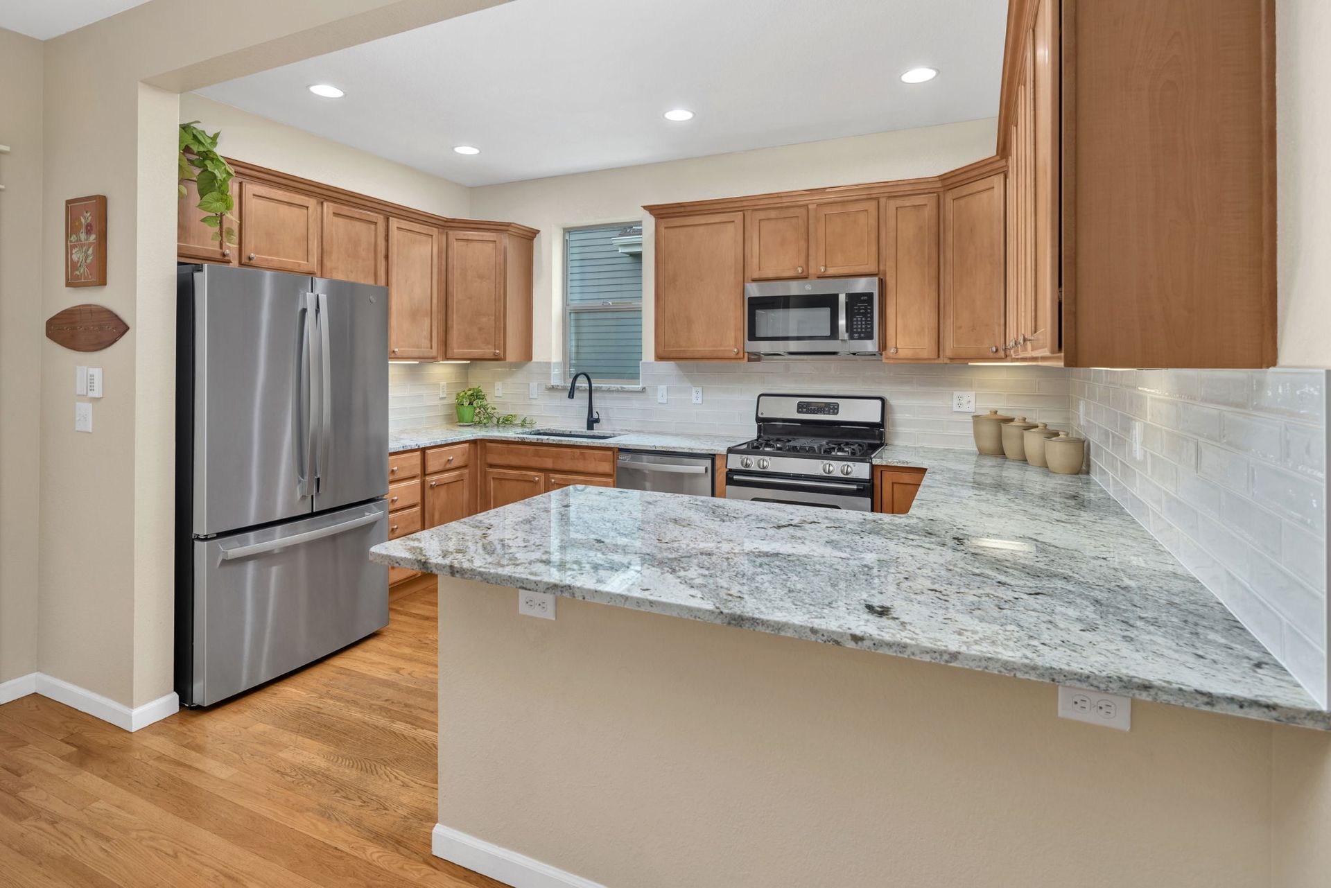 This lovely Eastbridge 2-story home is tucked back on a courtyard on a quiet street and features 4 beds/ 3.5 baths, oak floors, 2-car attached garage and a finished basement. Come inside, past the covered front porch into the spacious open-concept main living area. The living room showcases courtyard views and a timeless white mantle gas fireplace. The living space flows naturally into the dining room and beautifully renovated kitchen, perfectly finished with new granite counters and stainless steel appliances. A powder bath completes the main level. Head upstairs to the primary suite with majestic vaulted ceilings, a large walk-in closet and adjacent 5-piece bath, including a soaking tub, double sink vanity and a glass enclosed shower. Two additional bedrooms and a full bath with a tub shower are also found on this level. The basement is host to an additional bedroom and connected full bath, a finished storage closet with shelving, and a flex space, perfect for a workout room or a dedicated office. Quick commute to Anschutz Medical Complex, Downtown Denver and DIA! Close to shopping and restaurants at Stanley Marketplace and Eastbridge Town Center!
