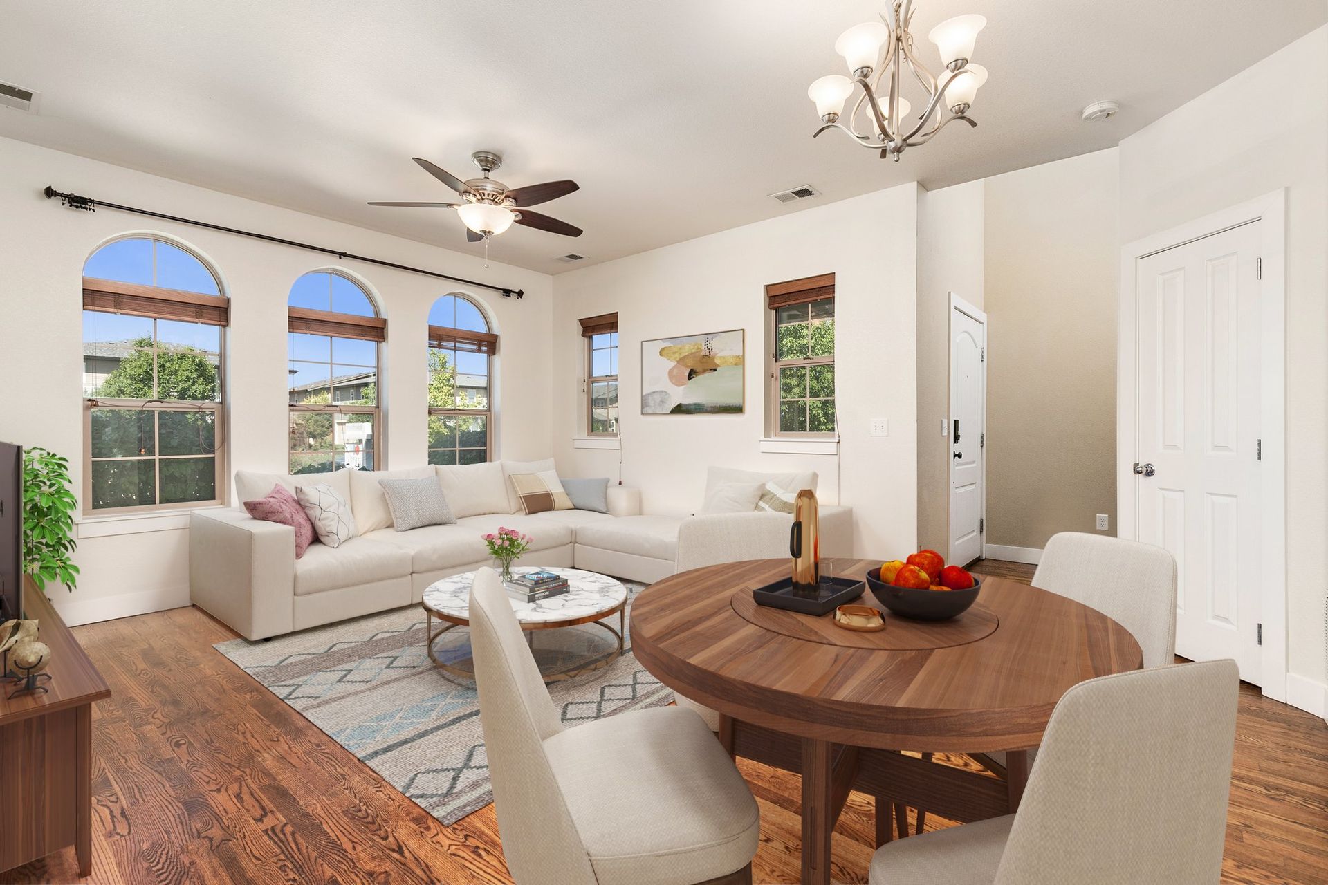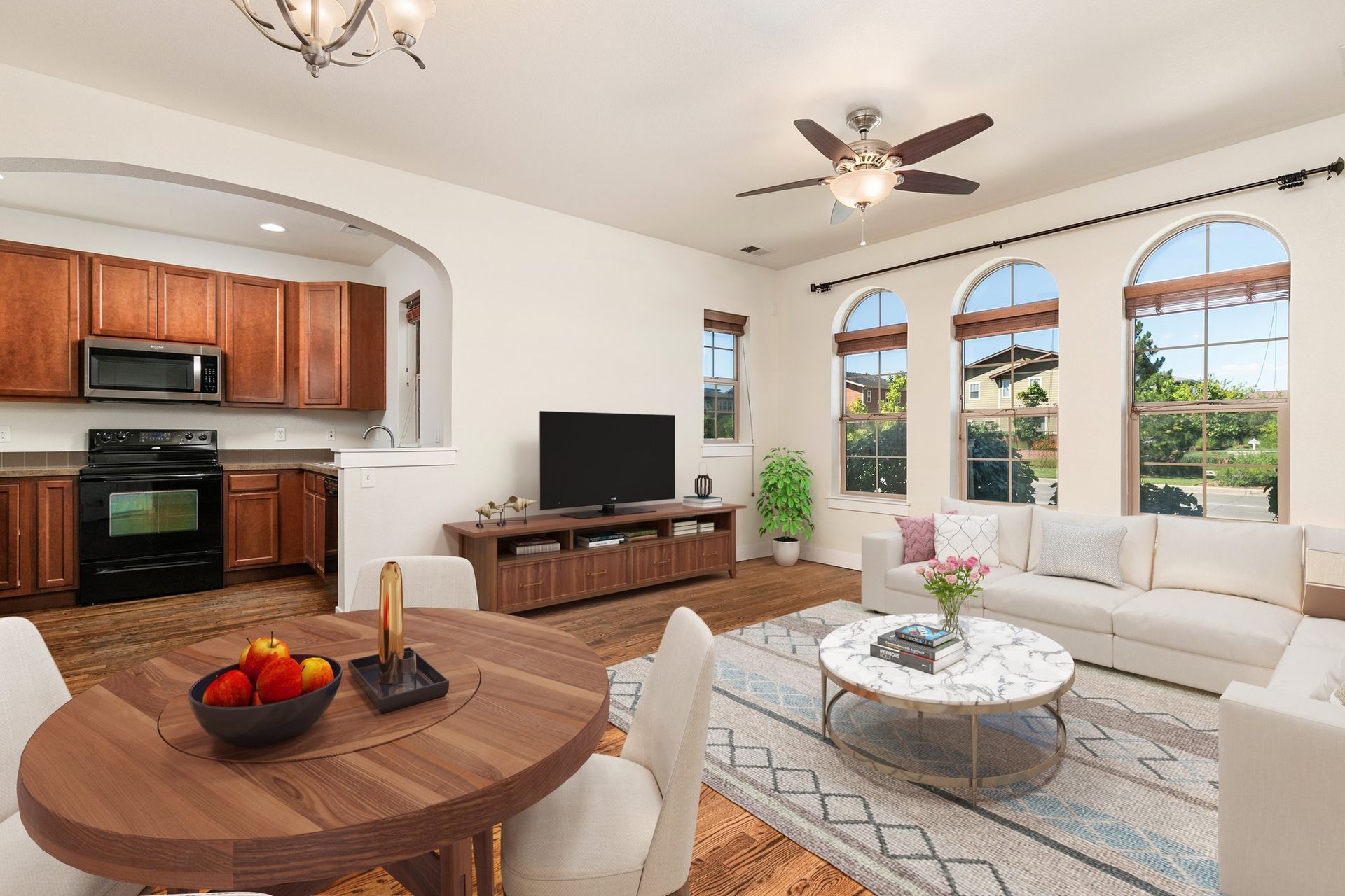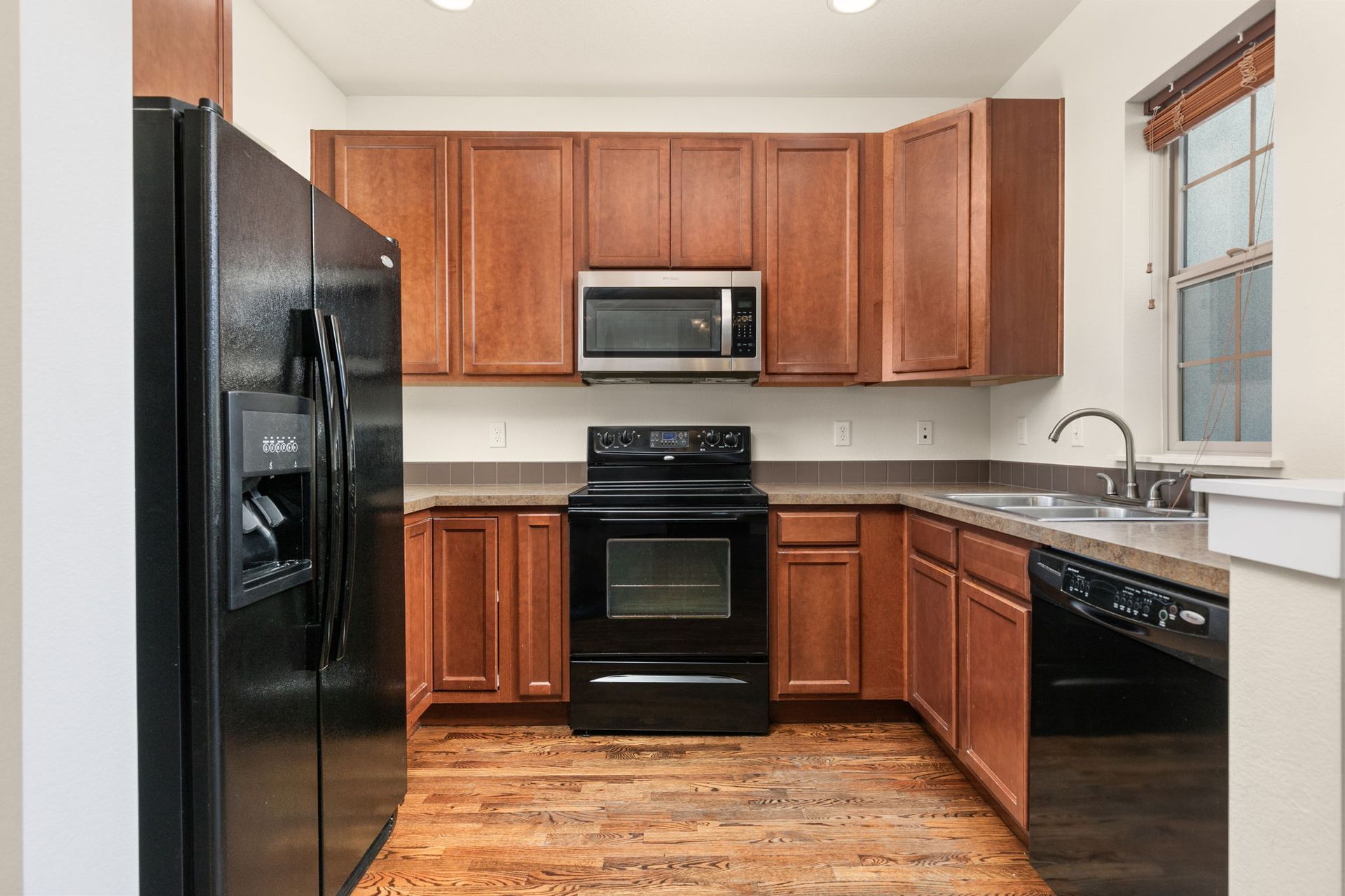 "Experience the perfect blend of comfort and convenience in this charming 2-story, 3-bedroom, 2.5-bathroom townhome, ideally located just one block from the stunning 80-acre Central Park! Enjoy the luxury of a 2-car attached garage and the convenience of an included washer and dryer. As you enter through your private, fully fenced front porch and side yard, you'll be welcomed by delightful arches and an inviting main level featuring beautiful solid oak hardwood floors. The well-appointed kitchen boasts modern appliances including a dishwasher and microwave, along with plenty of cabinetry for all your culinary needs. A powder room and laundry closet add to the functionality of the main level. Upstairs, the serene primary suite offers a bright walk-in closet and an en-suite bathroom, complete with a glass-enclosed shower with a bench, and extended vanity counter. Two additional generously sized bedrooms and a full bathroom with a tub/shower combo provide ample space for family or guests. Take advantage of the nearby Natural Grocers, Sprouts, and Flyte Co, or enjoy the local amenities like the Jet-Stream Pool, Central Park Rec Center, and Playground. With the A-Line light rail station just a short distance away, commuting to Downtown and DIA is a breeze. Dogs allowed with pet screening and pet rent. A flat utility fee covers water, trash/recycling, and sewer.