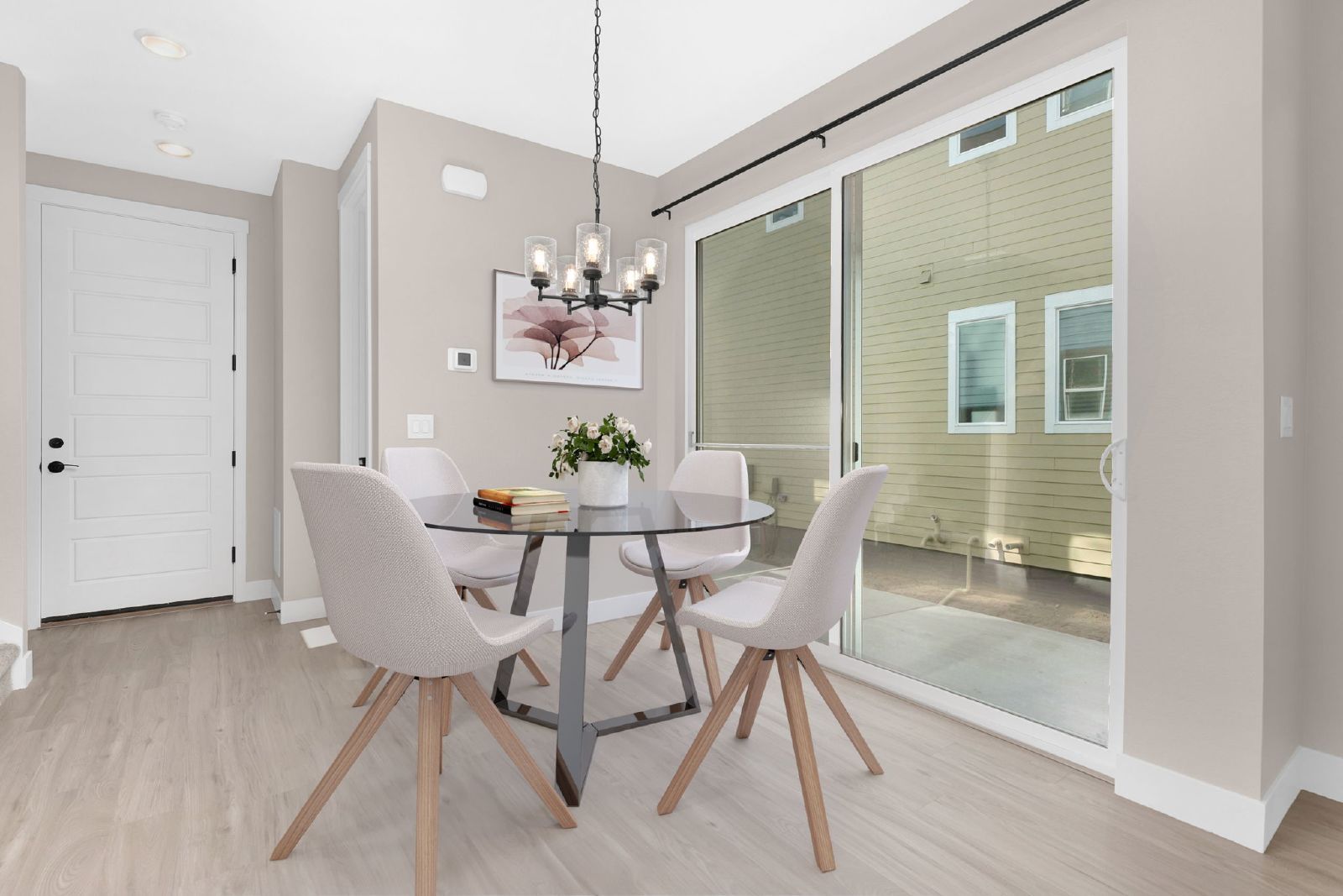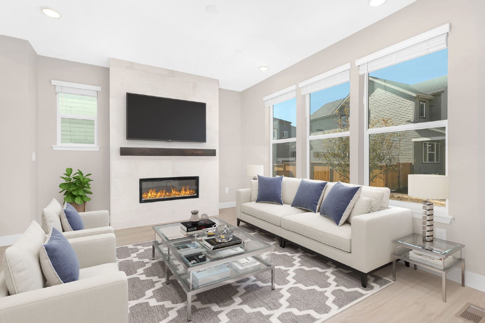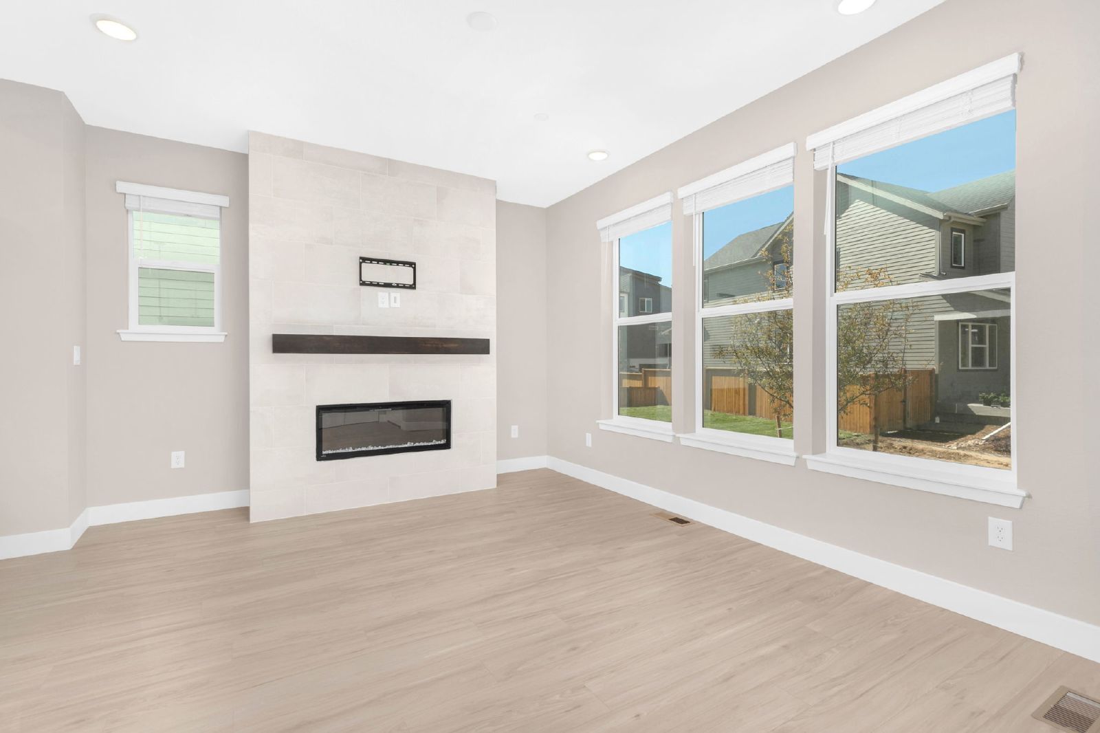 Brand new 3 bed/ 2.5 bath courtyard home with a 2-car attached garage, backyard and large unfinished basement with ample storage. Come inside to a beautiful open main-level with wide-plank durable wood floors, 10' ceilings and modern finishes throughout. The living space invites you to come get cozy with a wide ultra-lux gas fireplace with a floating wood mantle. The living room opens to the dining room, perfectly situated adjacent to the bright contemporary kitchen with Whirlpool stainless steel appliances, quartz counters, white shaker-style cabinets with under-lighting and a large central island. Head out back to discover the patio, ready for enjoying the Colorado sunshine! Head upstairs to find a loft/office space on your way back to the home's primary bedroom retreat with soaring vaulted ceilings, a spacious walk-in closet and en-suite bath with a frameless glass enclosed shower & extended dual sink quartz vanity. Two ample bedrooms, with peek-a-boo mountain views, a full bath with tub/shower combo and a laundry room with storage cabinetry completes the upstairs level. The home's unfinished basement provides for ample storage space. Miles of trails out your front door and the beloved Splash Landing Pool just 5 minutes away! Enjoy a short commute to Anschutz Medical Complex, DIA and Downtown Denver! Tenant responsible for flat rate utility fee which includes water, trash/recycle and sewer.