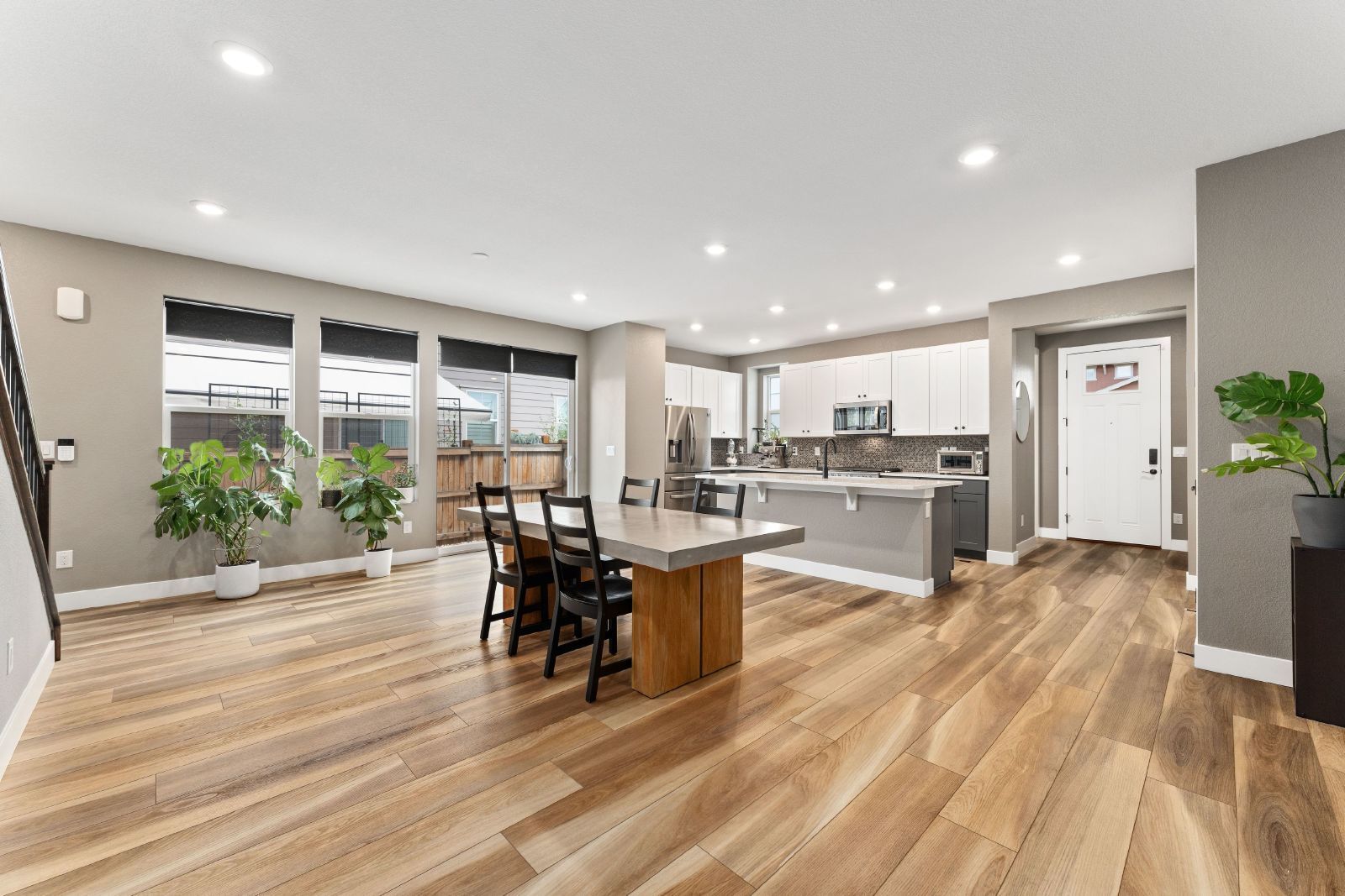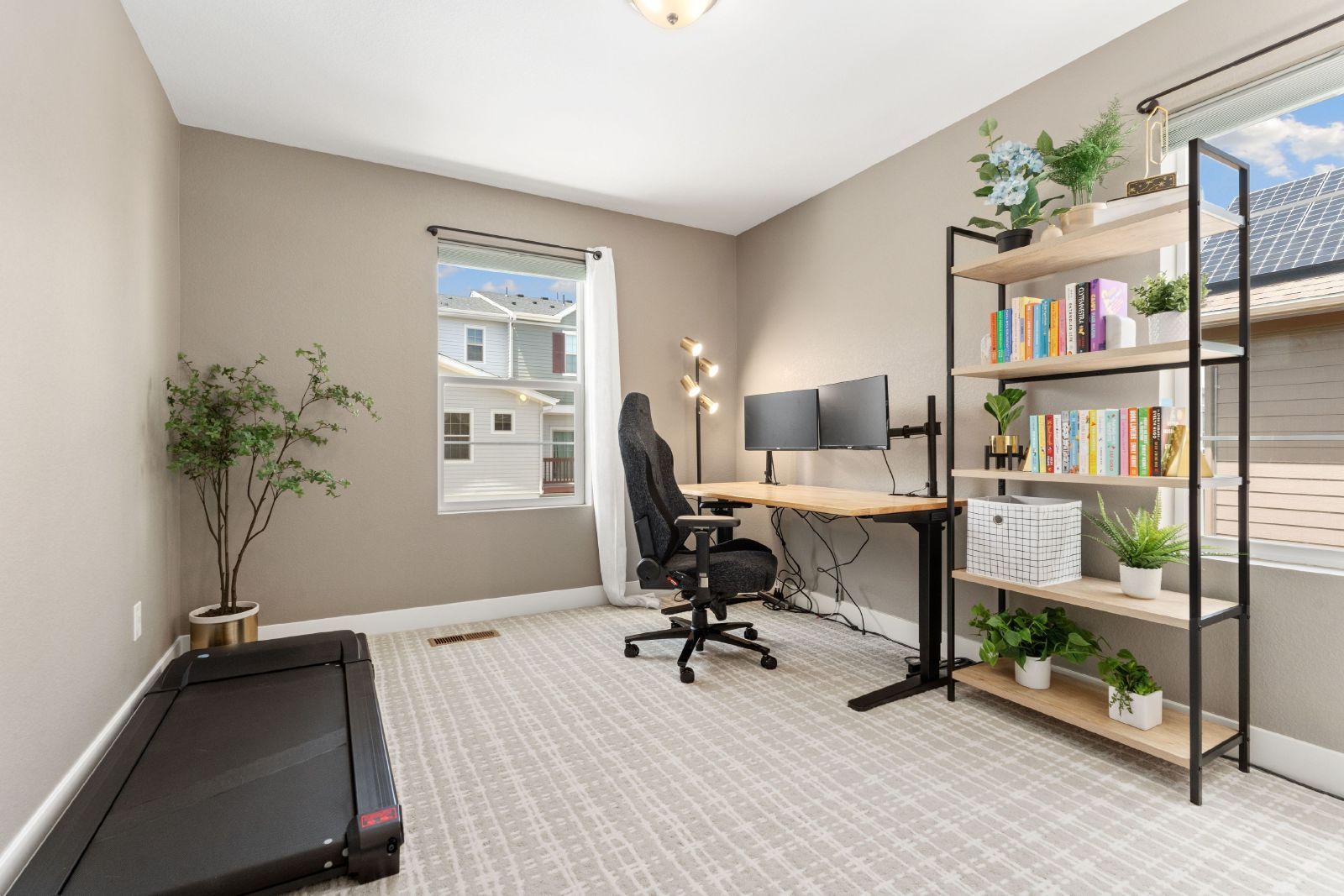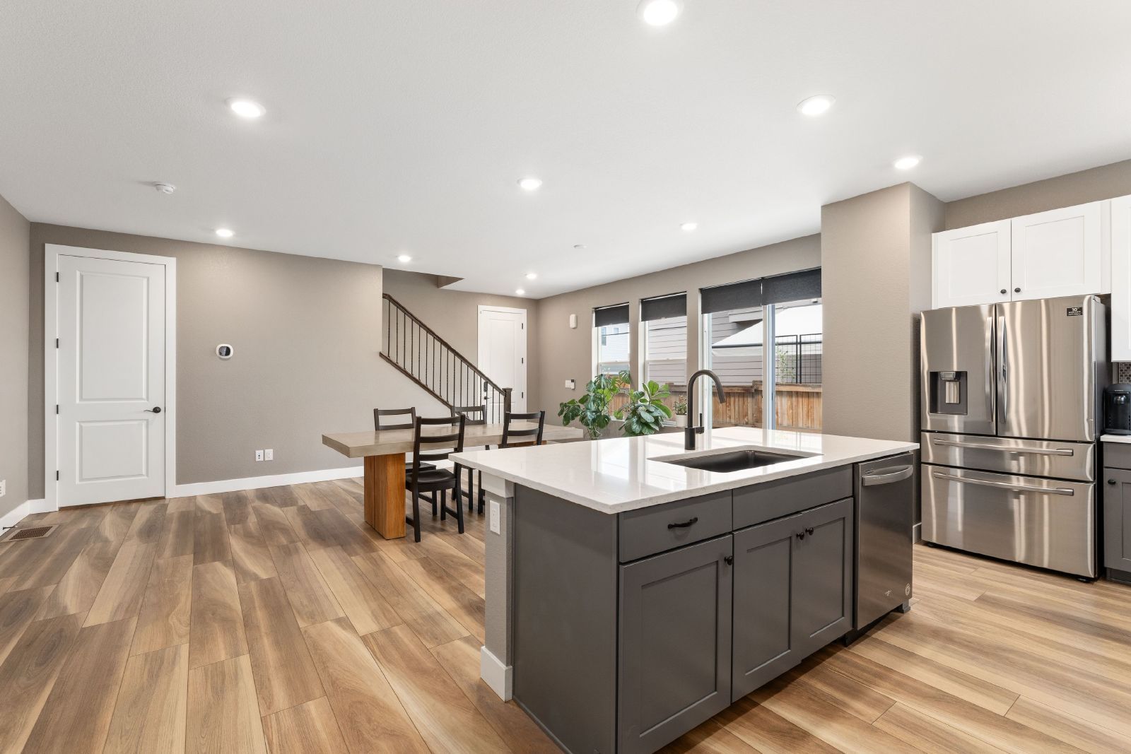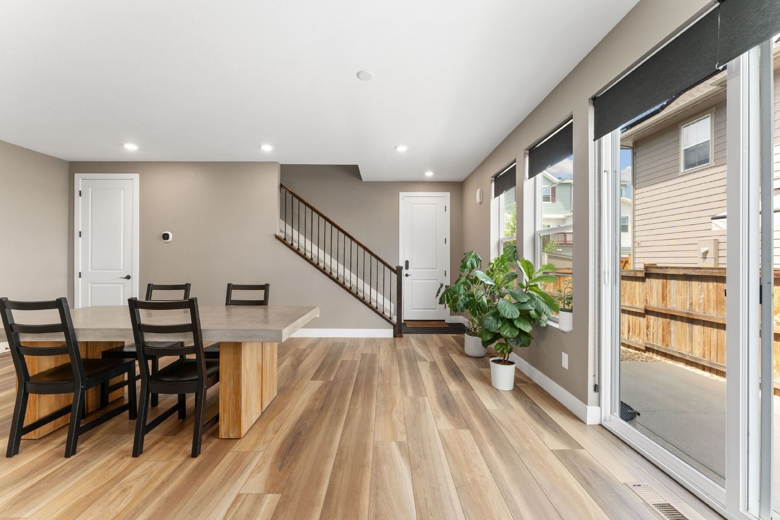 Stunning and impeccable 3 bed/ 3.5 bath duplex home with a finished basement, loft, private yard and 2-car attached garage, nestled on a gated courtyard in Central Park's Bluff Lake neighborhood. Step into an expansive and opulent open layout, highlighted by modern design touches, warm wood floors and upgraded features throughout. The epicenter of this home is its gourmet chef's kitchen, a masterpiece adorned with sleek quartz counters, a large central island, soft-close white & gray cabinetry, a fashionable penny-round tile backsplash, and top-of-the-line stainless steel appliances, including an enviable gas range that redefines culinary sophistication. The dining room seamlessly flows from the kitchen, creating an exquisite space for hosting gatherings. The open dining area effortlessly accommodates distinct living and dining areas, while a sliding door opens to the patio, allowing for a seamless fusion of indoor and outdoor living. An upper-level loft space and an additional basement family room, offer limitless possibilities for office/media/workout options. The primary sanctuary is a haven of lavishness, boasting an expansive layout and a spa-inspired 5-piece en-suite bath with a luxurious soaking tub. Two additional spacious bedrooms, one on the upper level and one in the basement, provide an abundance of space and exclusivity. Close proximity to the vibrant Stanley Marketplace, Anschutz Medical Campus, DIA, Downtown Denver, and within DPS school zones. This impeccably maintained gem awaits your presence. Come discover the best of Central Park living! Pets allowed. Tenant responsible for flat rate utility fee which includes water, trash/recycle and sewer.