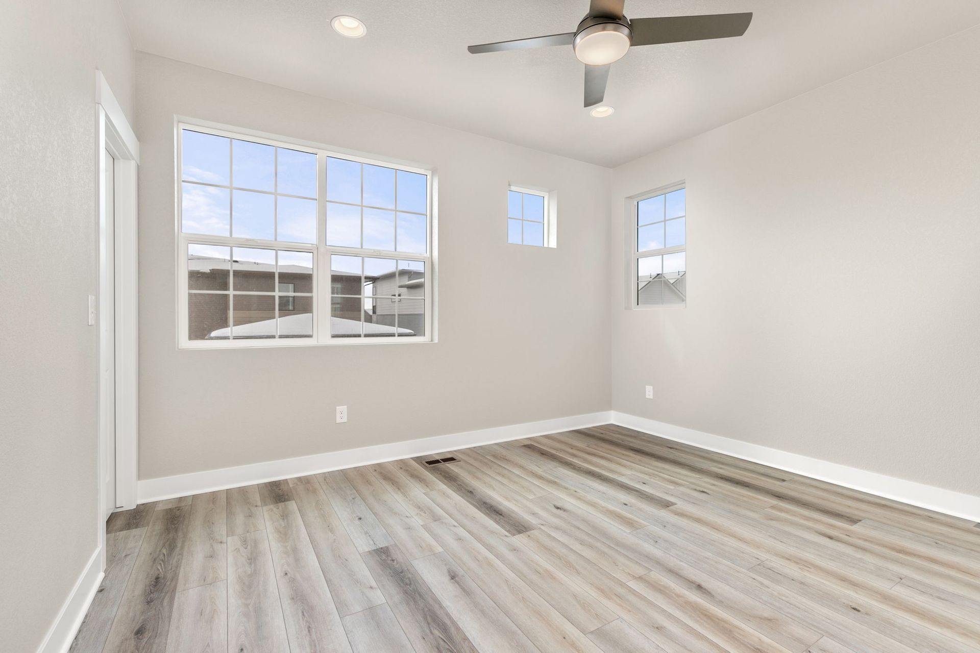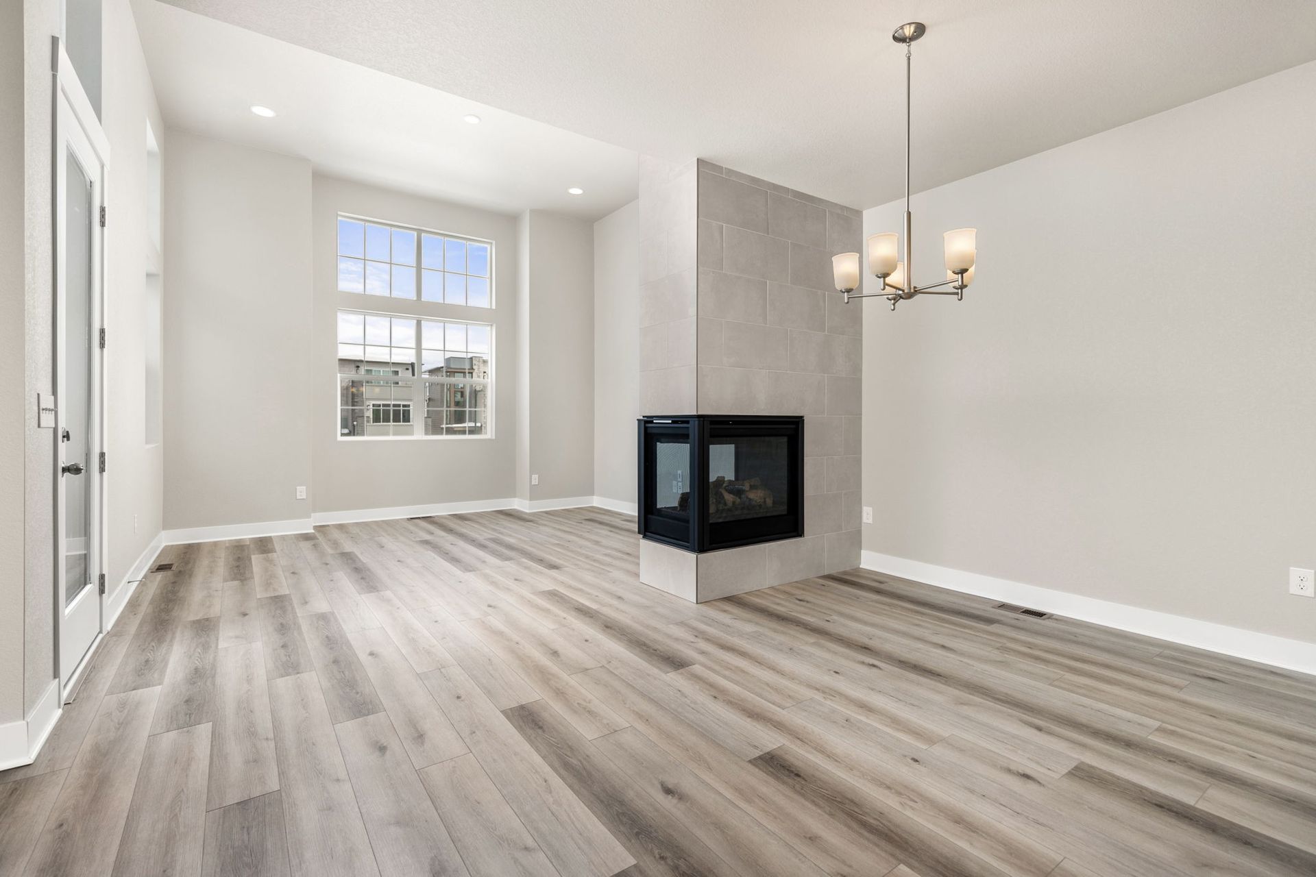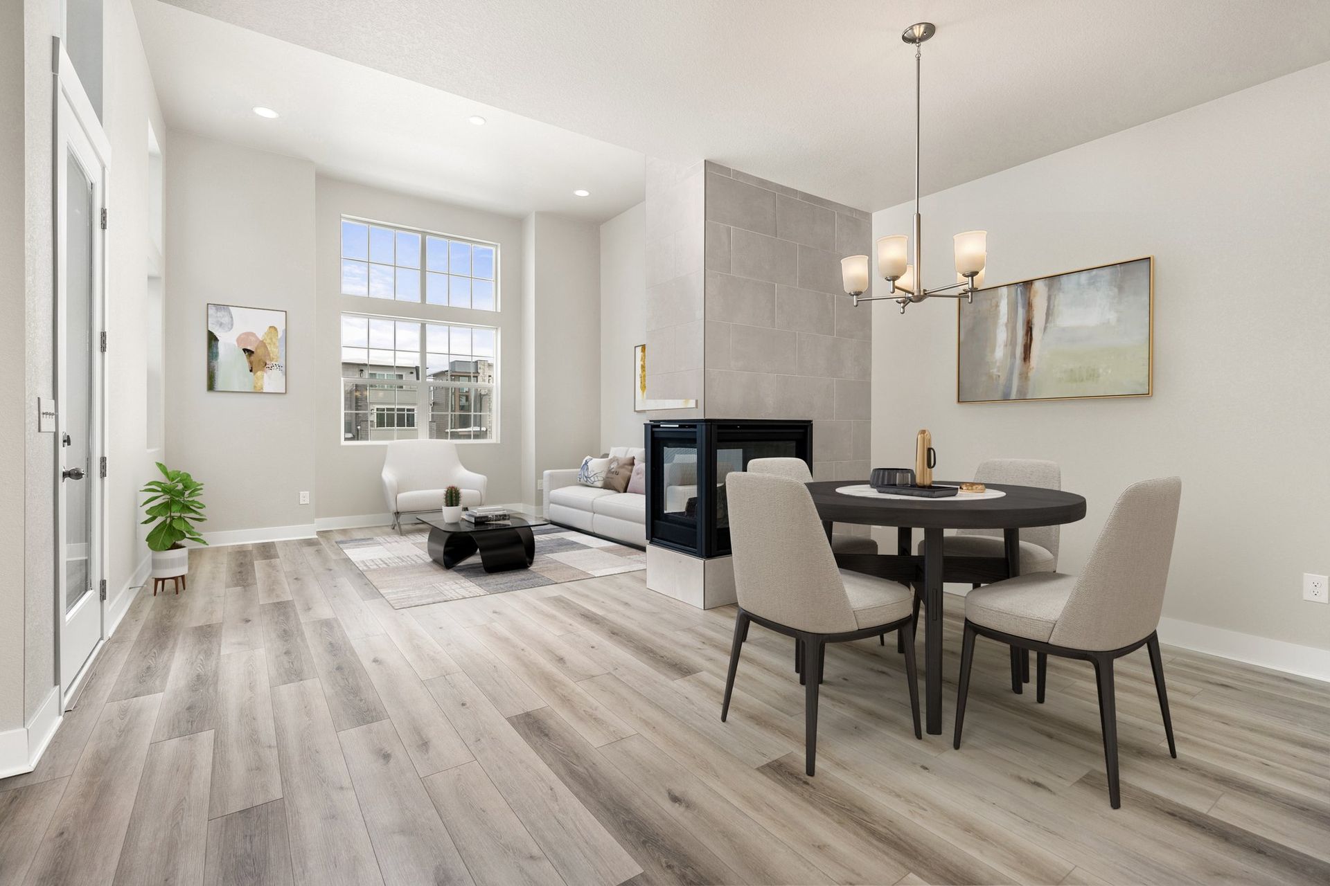 3-story 3 bed/ 3 bath end-unit townhome featuring exquisite modern finishes, suite-style bedrooms and a 2-car attached finished garage! This stunning home welcomes you into the lower level with a bonus room, perfect for a home office with access to the covered front porch. Head upstairs to find the seamless open concept main level living, encompassing the kitchen, living, and dining spaces in beautiful harmony. The lovely kitchen is fully equipped with GE stainless steel appliances, white quartz counters, white herringbone tile backsplash, a huge pantry and a large central island. The dining space is beautifully pronounced with a contemporary chandelier, while the luxurious peninsula gas fireplace accentuates the divide of the impressive living area with soaring high ceilings. Check out the adjacent deck & balcony, destined to become one of your new favorite chill spots. Head back to the main level spacious primary suite with a large walk-in closet, and primary en-suite bath showcasing dual quartz vanities, and a 9-foot Euro-style frameless glass shower with a bench. Head up to the third level find two more spacious bedrooms with accompanying full baths and walk-in closets, one with views of the Rocky Mountains. A laundry closet with a washer and dryer is also found on the third level. Located in the highly desirable Central Park North End neighborhood, this gorgeous brand new home is just minutes from the Splash Landing pool, multiple parks, and miles of trails in the Rocky Mountain Arsenal Wildlife Refuge! Quick commute to Anschutz, Downtown Denver and DIA! Tenant responsible for flat rate utility fee which includes water, trash/recycle and sewer.