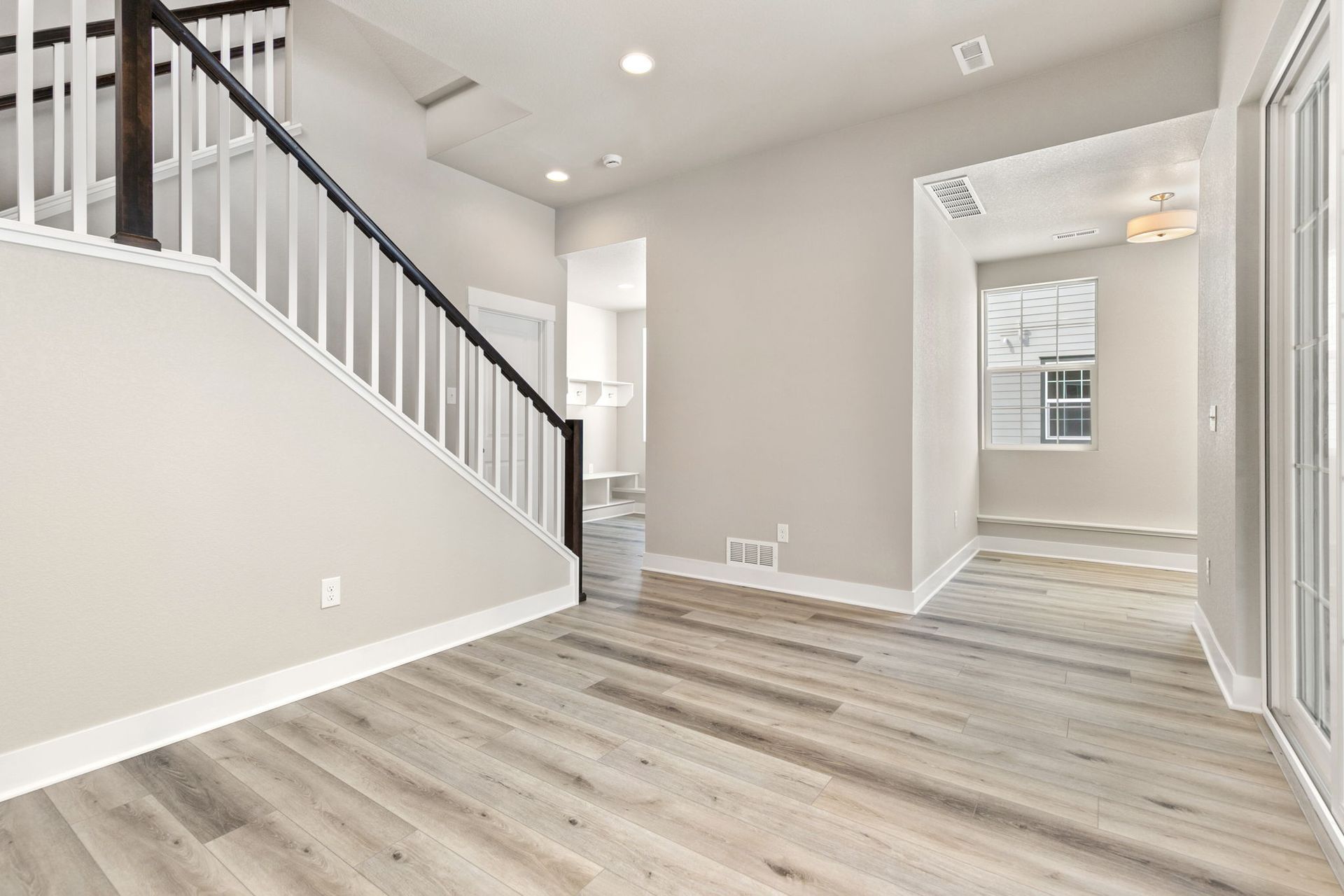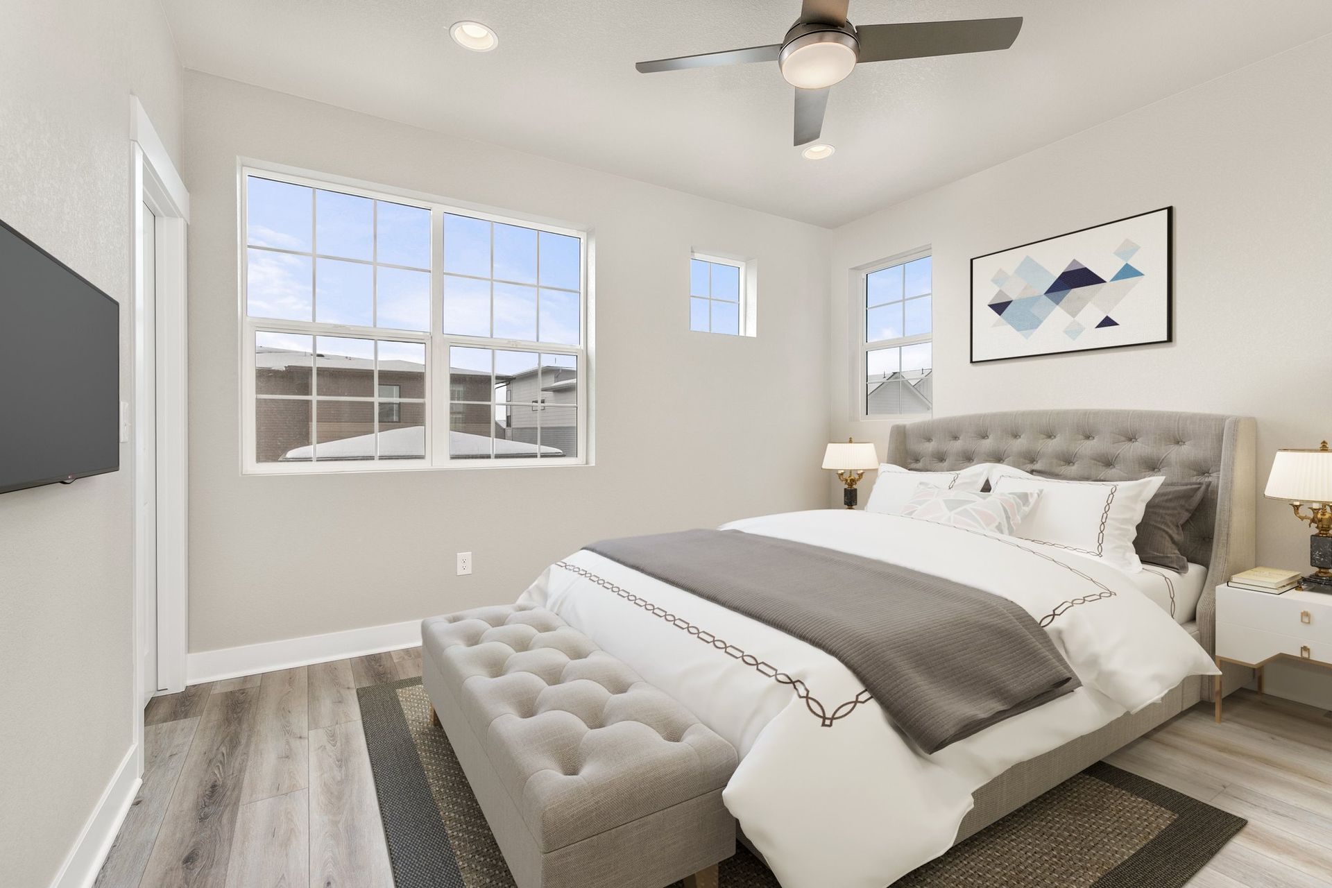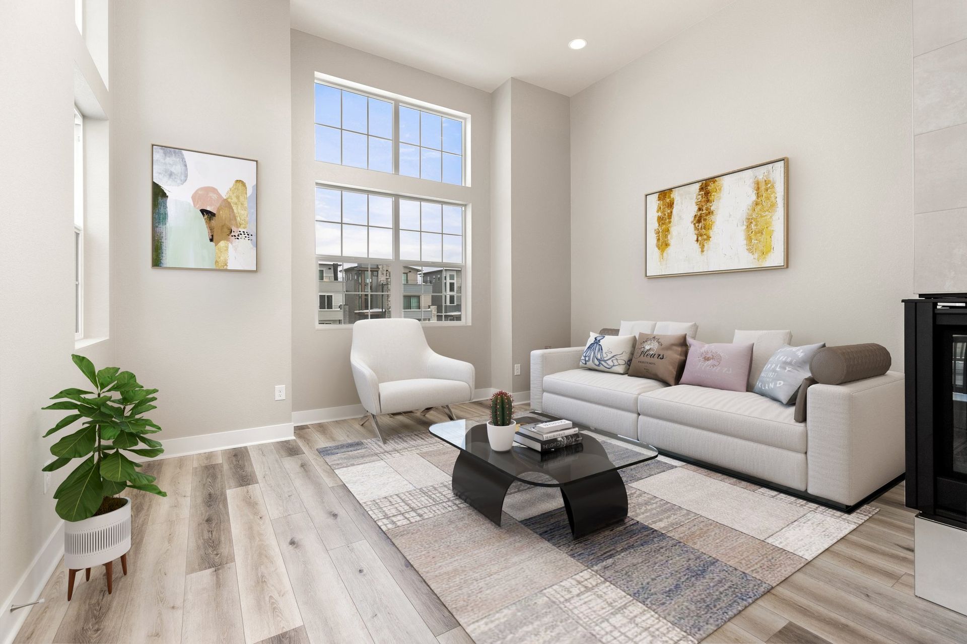 3-story 3 bed/ 3 bath end-unit townhome featuring exquisite modern finishes, suite-style bedrooms and a 2-car attached finished garage! This stunning home welcomes you into the lower level with a bonus room, perfect for a home office with access to the covered front porch. Head upstairs to find the seamless open concept main level living, encompassing the kitchen, living, and dining spaces in beautiful harmony. The lovely kitchen is fully equipped with GE stainless steel appliances, white quartz counters, white herringbone tile backsplash, a huge pantry and a large central island. The dining space is beautifully pronounced with a contemporary chandelier, while the luxurious peninsula gas fireplace accentuates the divide of the impressive living area with soaring high ceilings. Check out the adjacent deck & balcony, destined to become one of your new favorite chill spots. Head back to the main level spacious primary suite with a large walk-in closet, and primary en-suite bath showcasing dual quartz vanities, and a 9-foot Euro-style frameless glass shower with a bench. Head up to the third level find two more spacious bedrooms with accompanying full baths and walk-in closets, one with views of the Rocky Mountains. A laundry closet with a washer and dryer is also found on the third level. Located in the highly desirable Central Park North End neighborhood, this gorgeous brand new home is just minutes from the Splash Landing pool, multiple parks, and miles of trails in the Rocky Mountain Arsenal Wildlife Refuge! Quick commute to Anschutz, Downtown Denver and DIA! Tenant responsible for flat rate utility fee which includes water, trash/recycle and sewer.